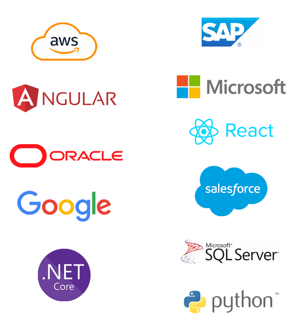 React.js, Angular, Vue.js, TypeScript, Next.js, Nuxt.js, Java, C# / .NET Core, Python, JavaScript, PHP, Ruby, SQL, among others